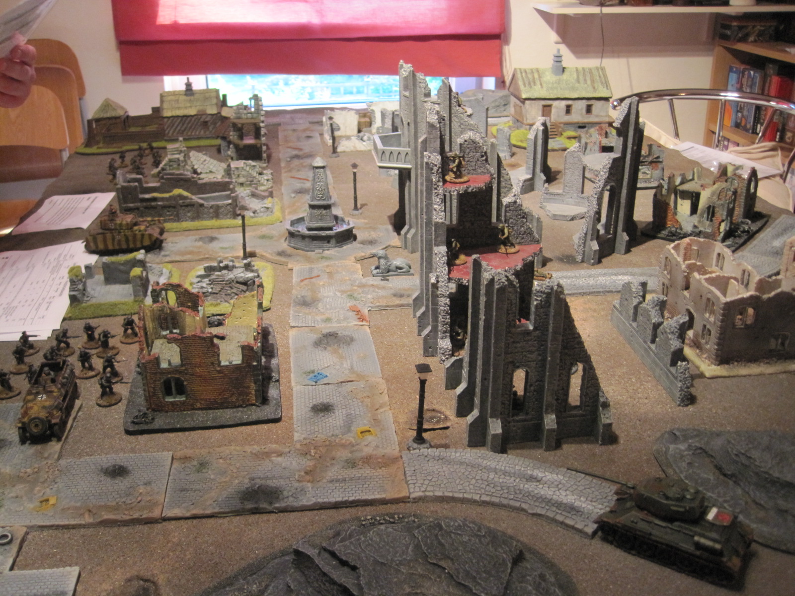 Andy’s Soviets defended the Town Hall against Mike’s Panzergrenadiers.