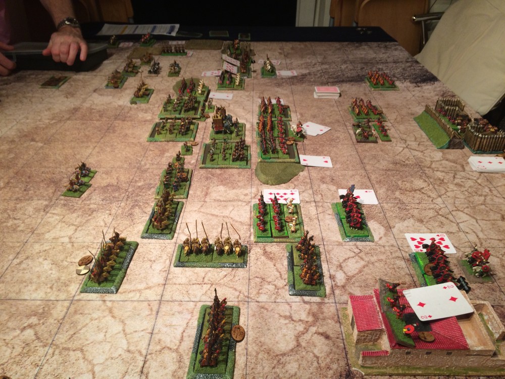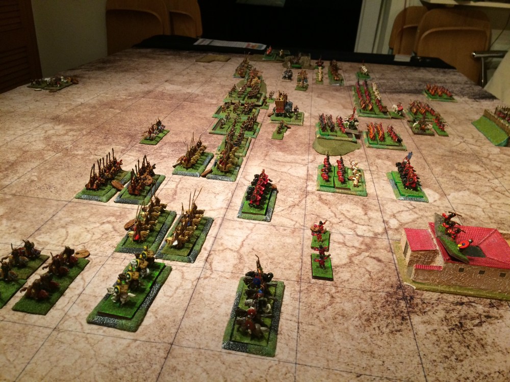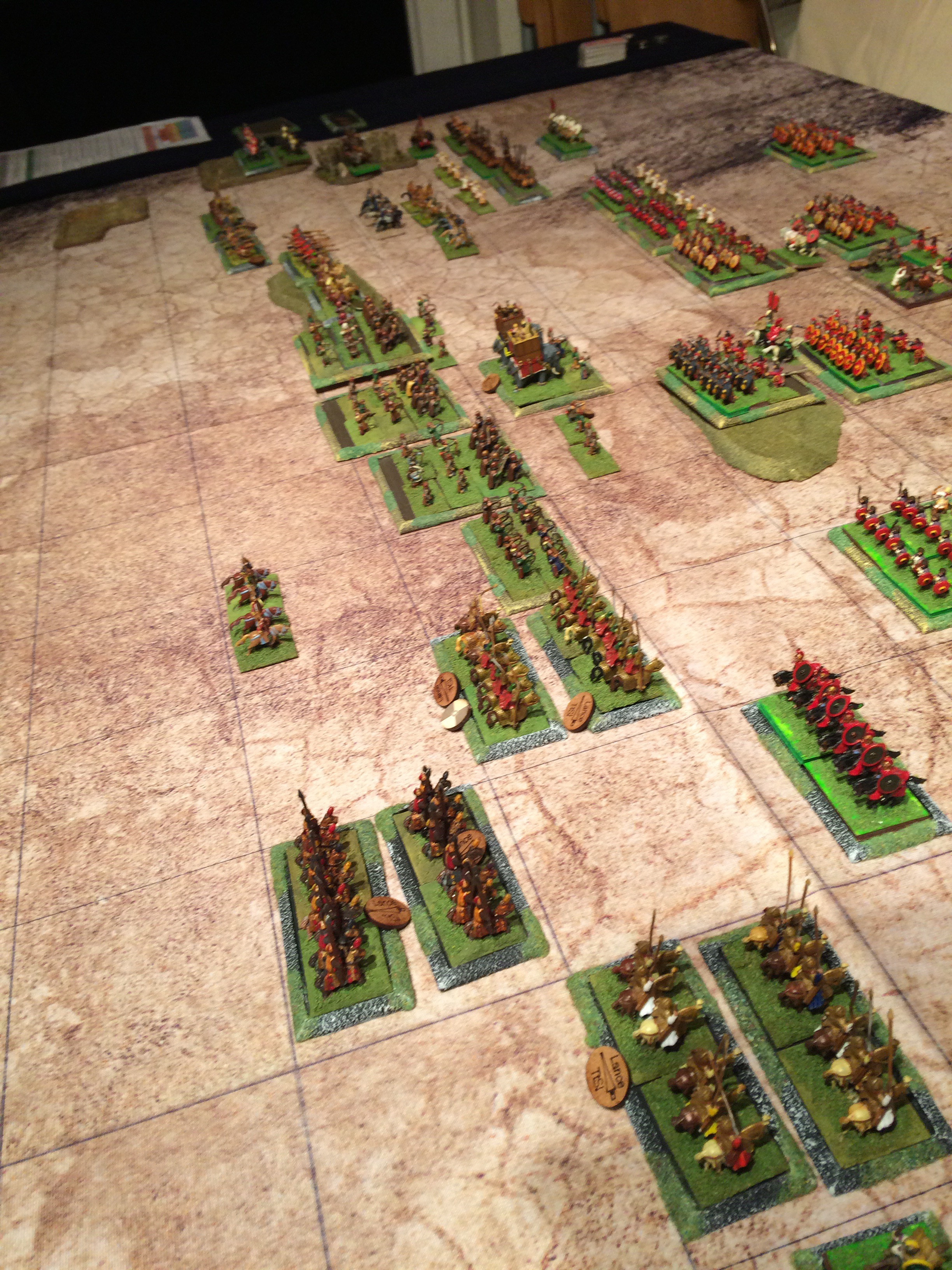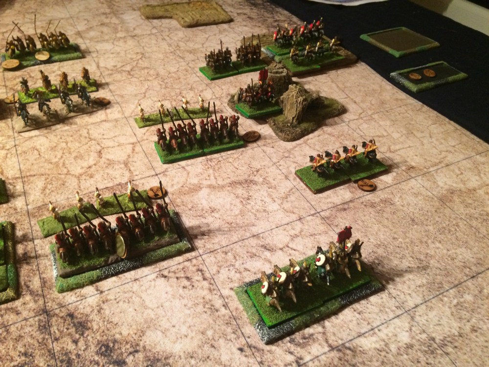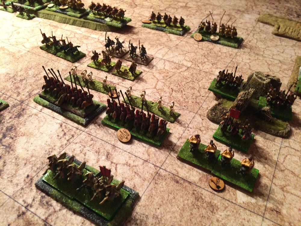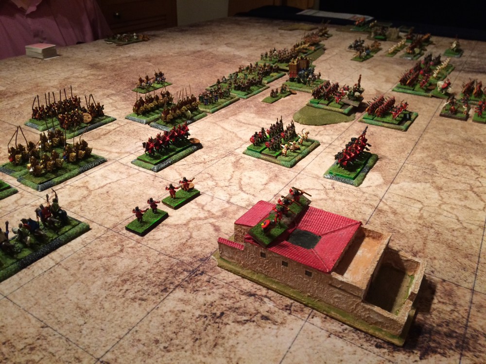 Fourth century romans versus Sassanid Persians one the Armenian borders. Mike and Michael took on phils romans with their mighty Persian force. Both sides garnered 250 points each.