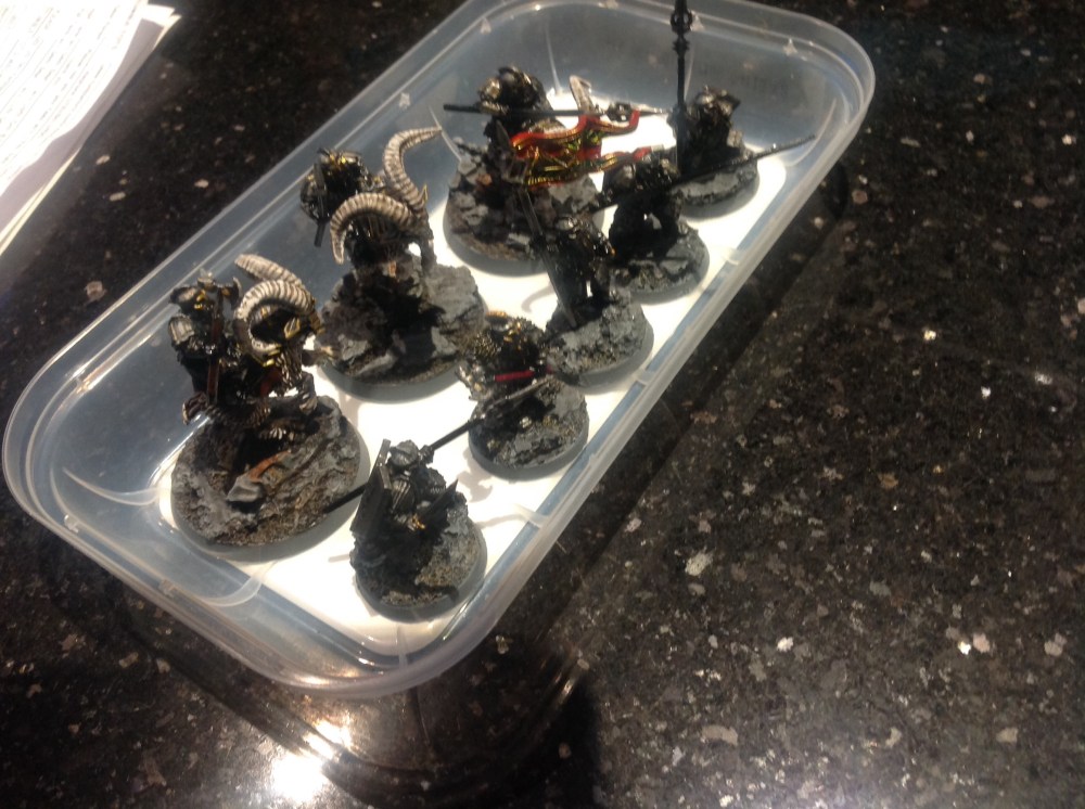 Painted some iron hills dwarves, infantry with spears, command for mattock and goat rider cavalry. Spent ages so disappointed when the dreaded varnish spray clouding happened. Rescued with olive oil but they look a little more gloss now as a result.