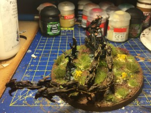 Undercoat black as per previous post. Acrylic coffee brown to sand on base then highlight with graveyard earth. Dark Grey stones, add fortress grey highlight then edge highlight fortress grey.