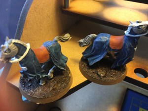 Details and corrections added. Sepia wash to horses. Highlights applied to cloth using citadel light blue dry brush paint. Was a bit uncertain over using that as opposed to highlighting, hopefully looks okay.