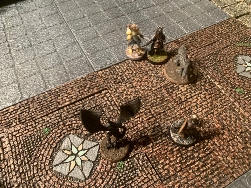 The courtyard was the way out and Link with the decanter needed to escape by one of the exit points. Gwalchmai knocked his magic arrow and scored a critical hit on the flying terror across the yard. Steel Blaze and the others blocked the monsters and provided cover for Link and Dark Tom and Emilia used their magic powers to good effect.