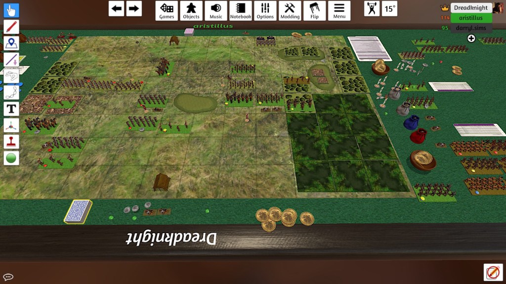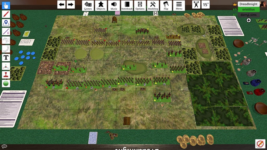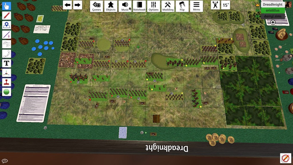 A great game fought in a good spirit. Some amazing twists and turns. Fighting the battle using miniatures was good fun. Glad to get the soldiers back out of the box after so long and still play with real opponents. Thanks all.