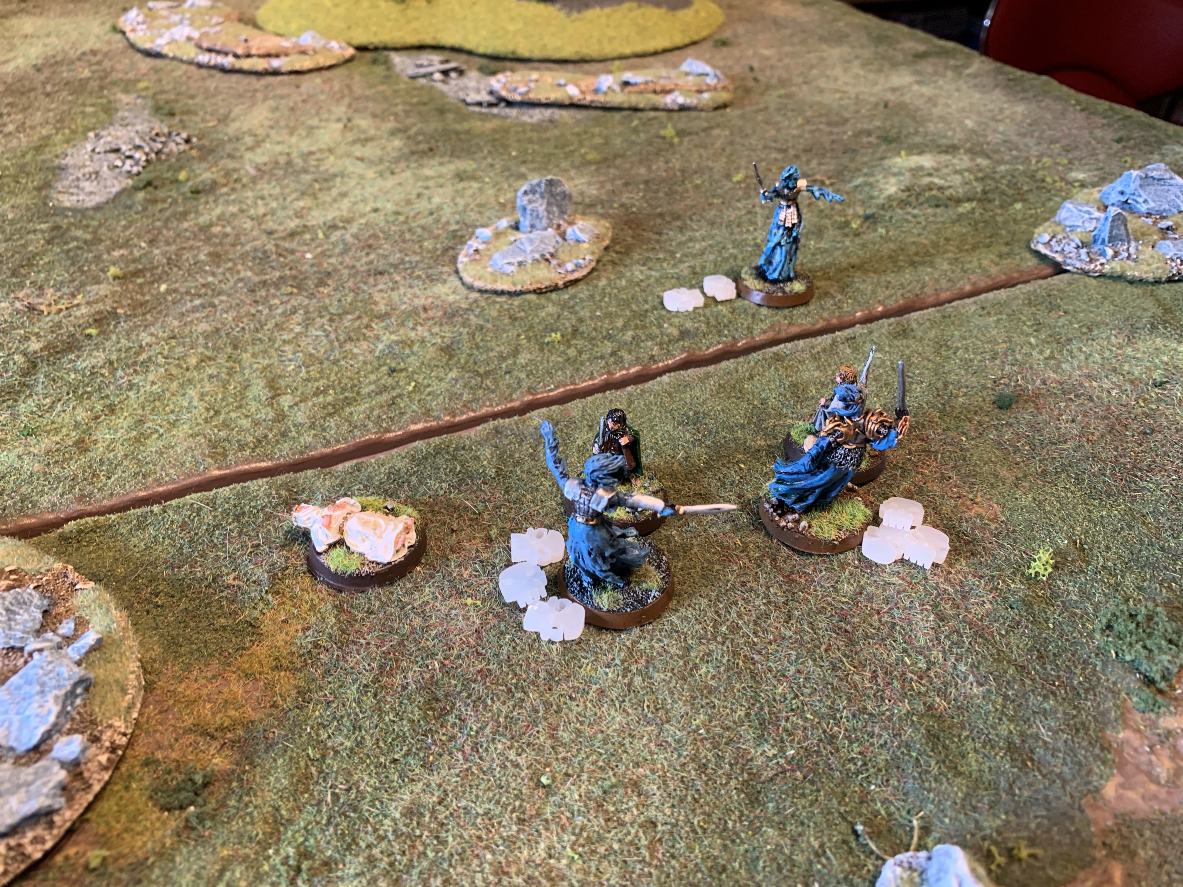 Meanwhile the other 3 Wights descend onto the the 3 Hobbits who all successfully resist their dark spells. They then close to combat but are driven off by the brave halflings!