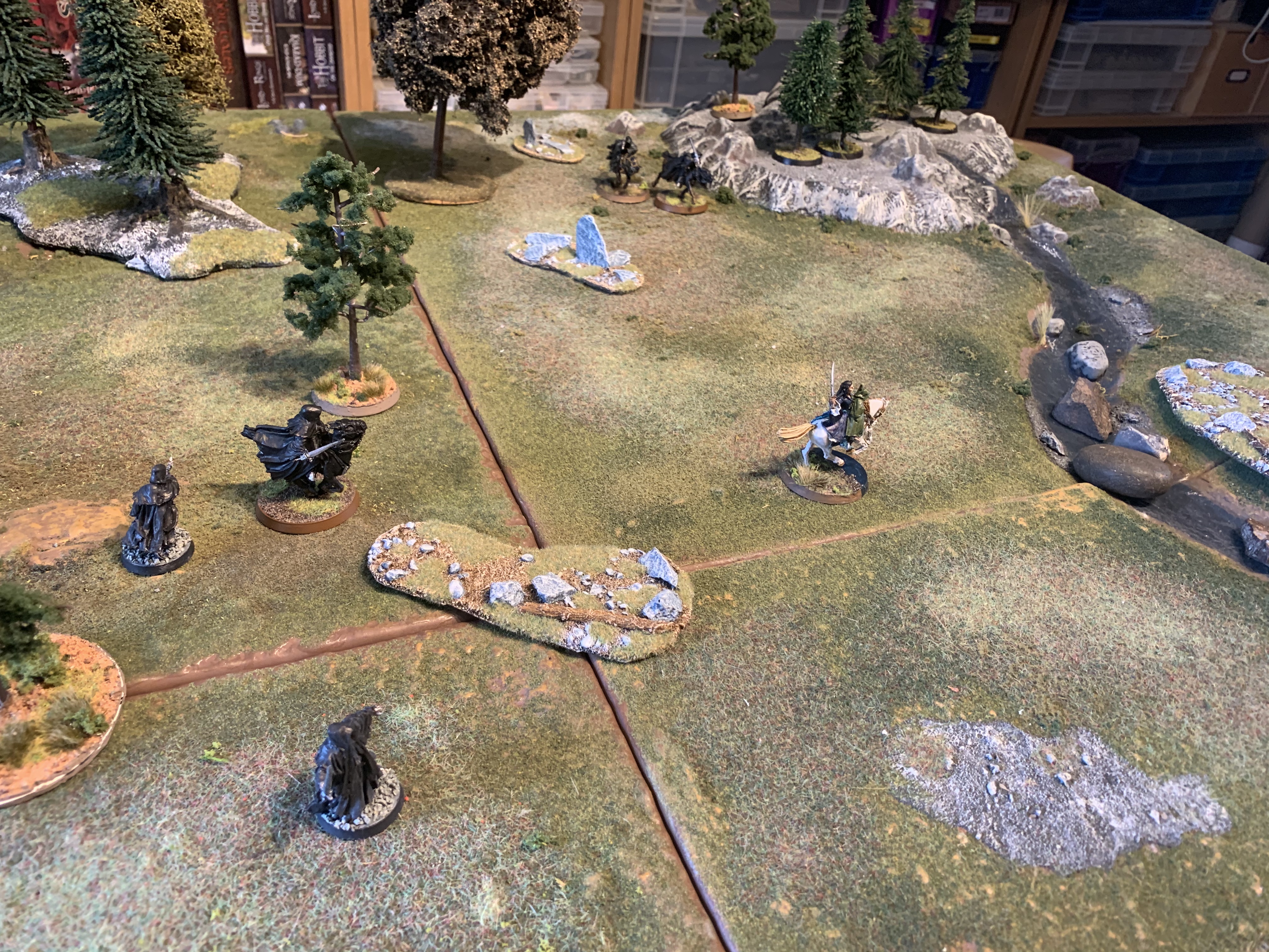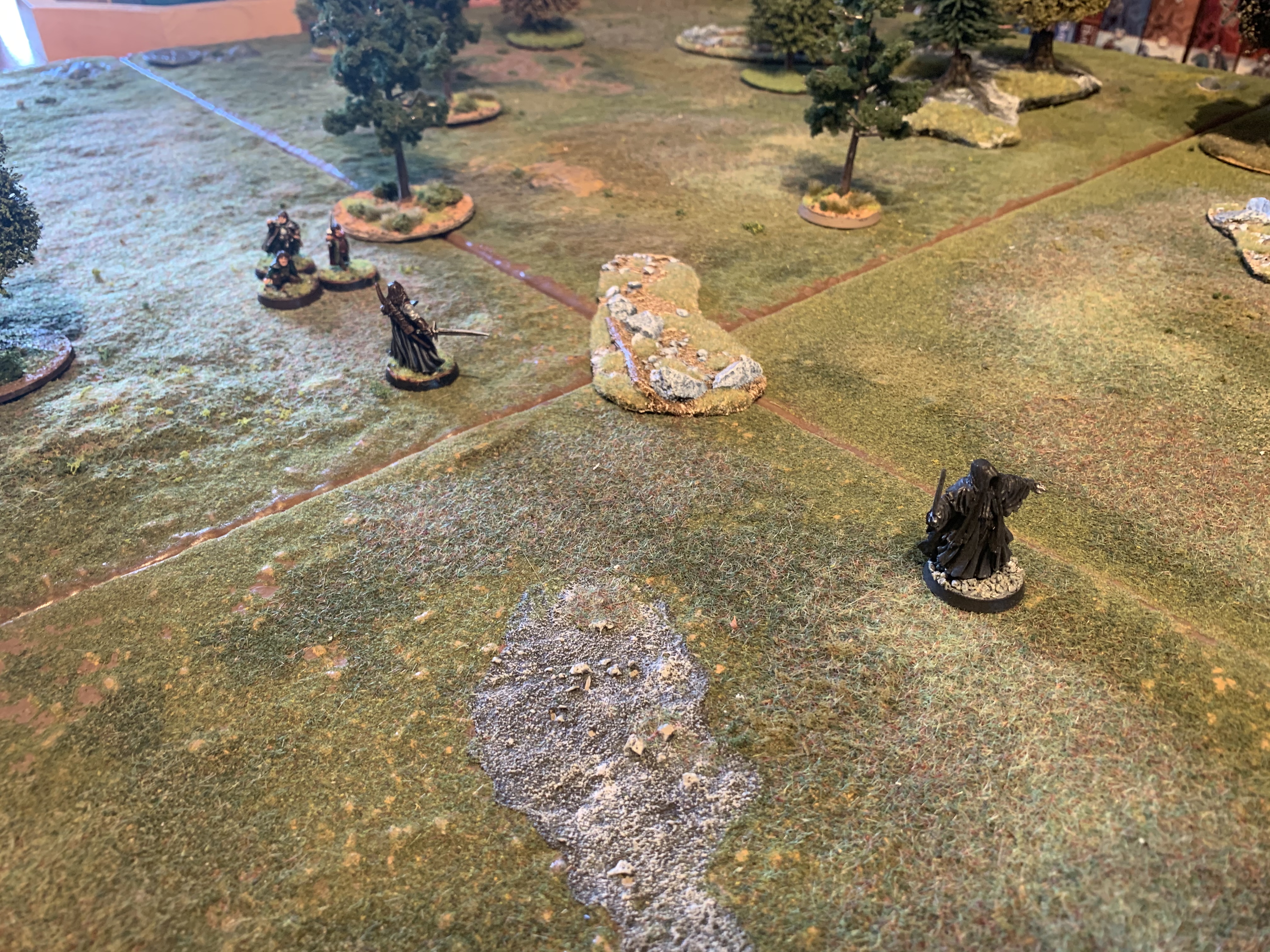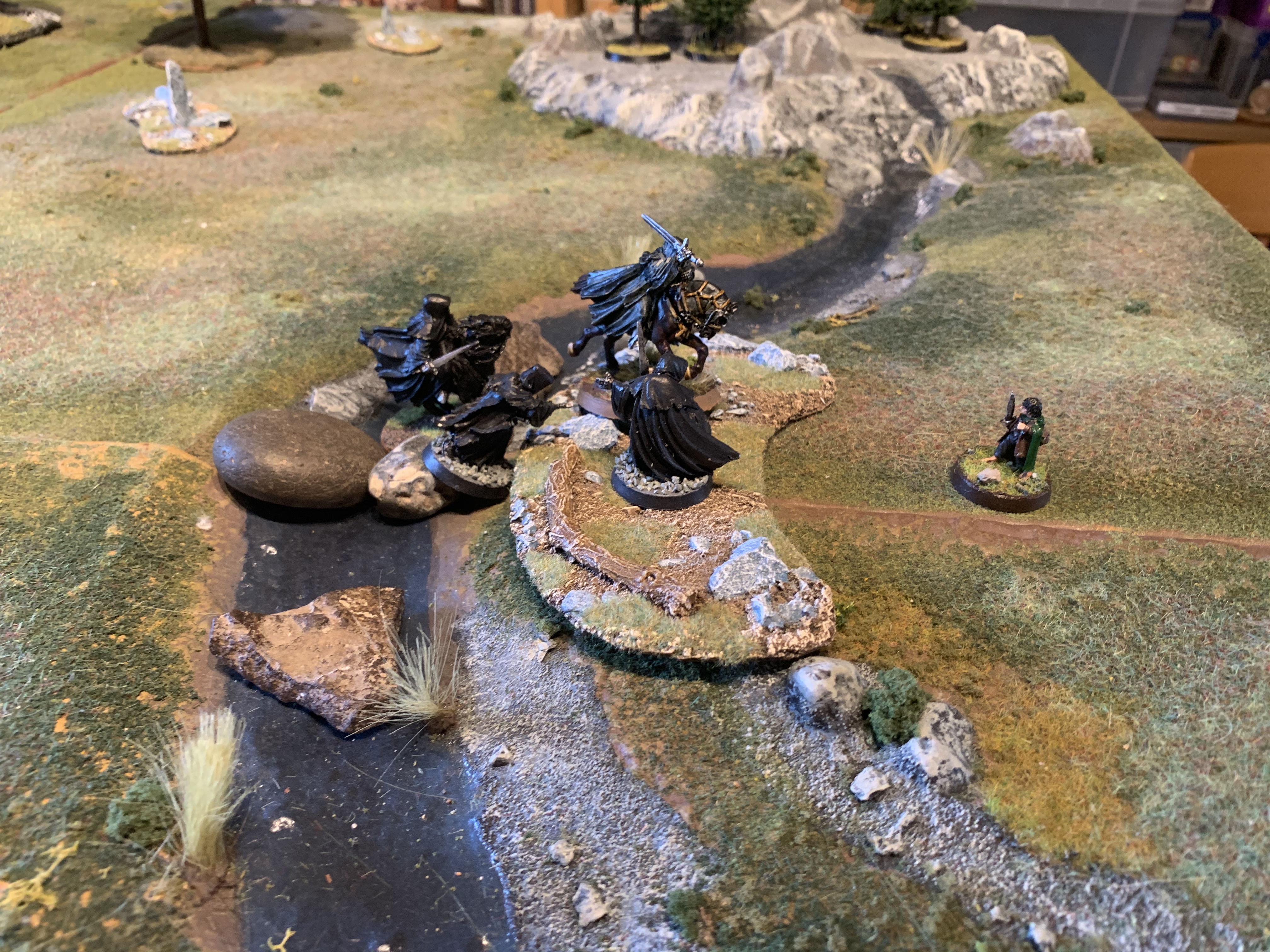 Good start with priority and Asfaloth races off and Aragorn and the Hobbits move swiftly around the Nazgul to assist but cannot charge the first turn.