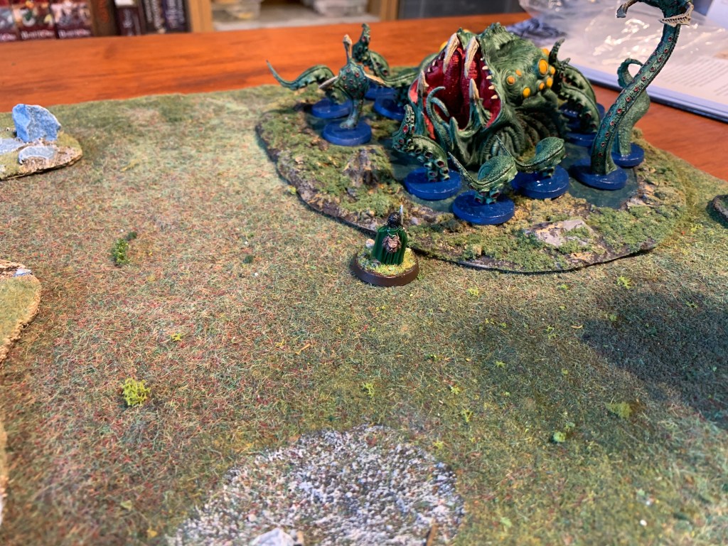 Six tentacles lash out and grab Frodo. Fortunately he survives with the loss of 2 fate but is dragged towards it into close combat!