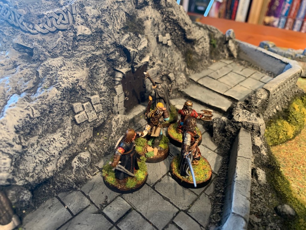 Frodo reaches the exit as the Fellowship withdraws keeping out of the long reach of its tentacles with Aragorn and Gandalf and Legolas continuing to inflict wounds until it reaches one and continually pushing it out of range of its tentacles attack. The stronger heroes wait until the hobbits escape and then join them in the Long Dark of Moria. Sadly Bill the Pony gets left behind!