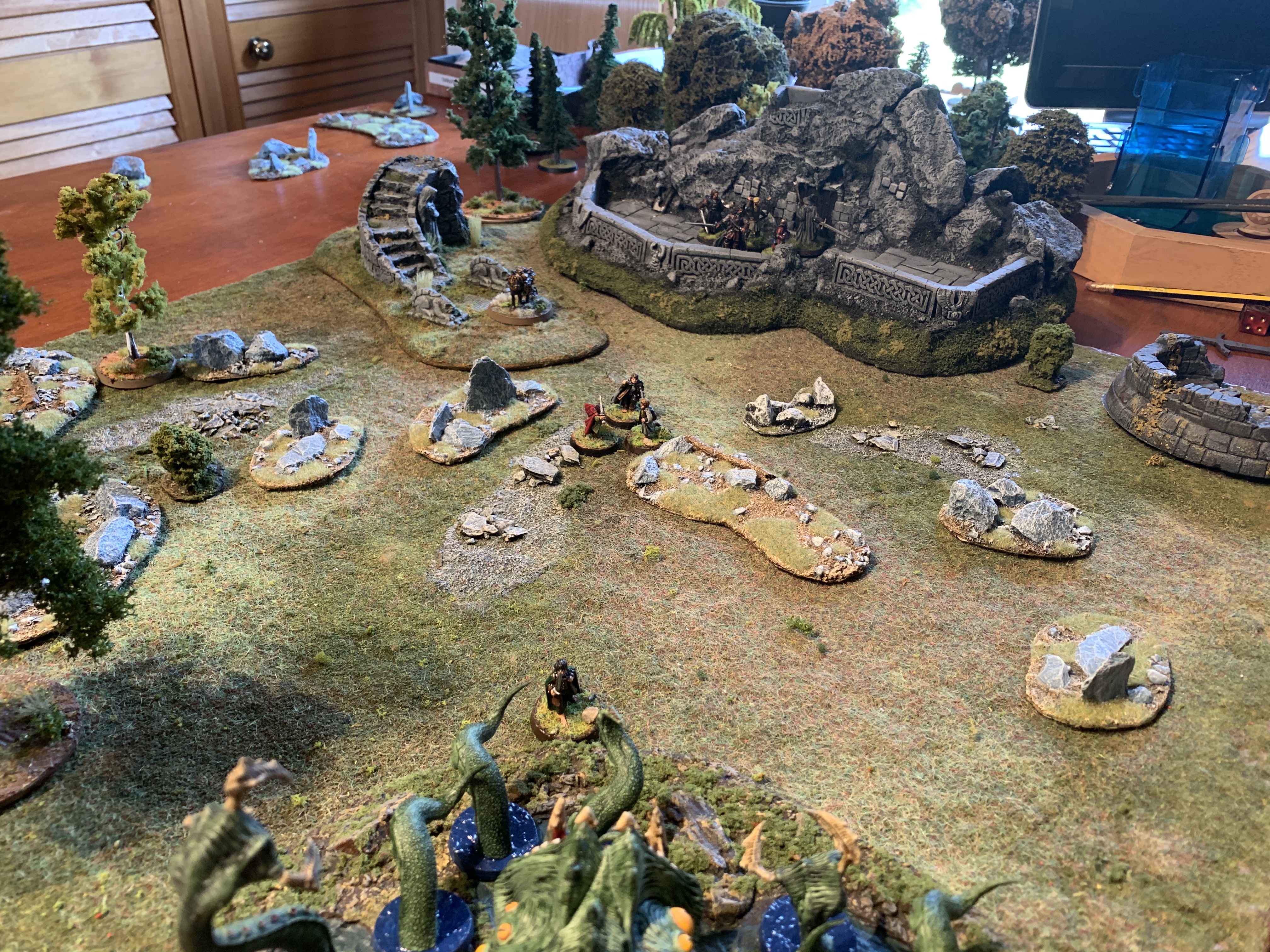 Six tentacles lash out and grab Frodo. Fortunately he survives with the loss of 2 fate but is dragged towards it into close combat!
