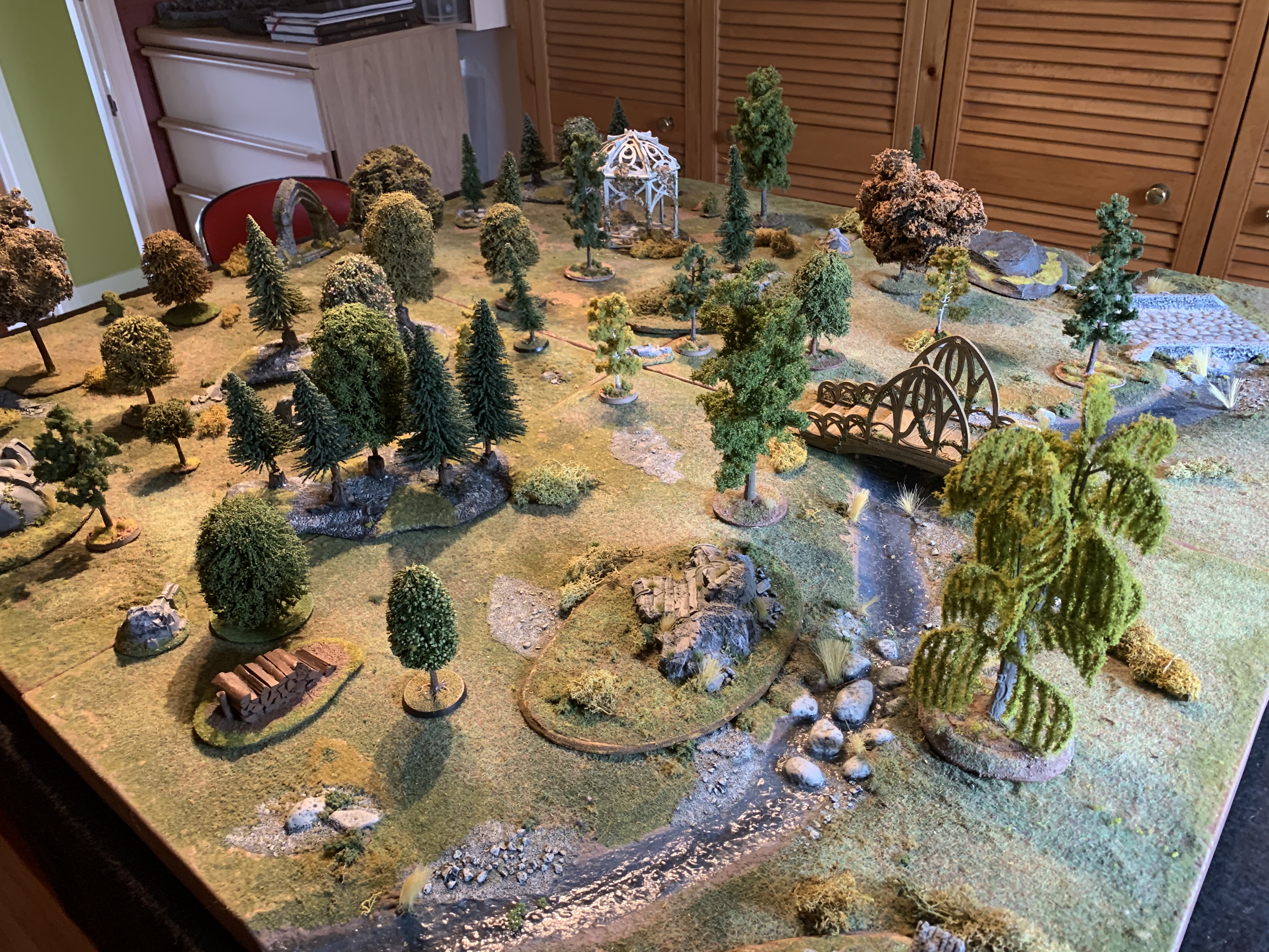 The Silverlode is in flood and impassable. They find an old elven bridge, still in good repair that crosses over into a glade. Traders and travellers once gathered here on the edge of the Forest in better times. Now all lies in ruin.