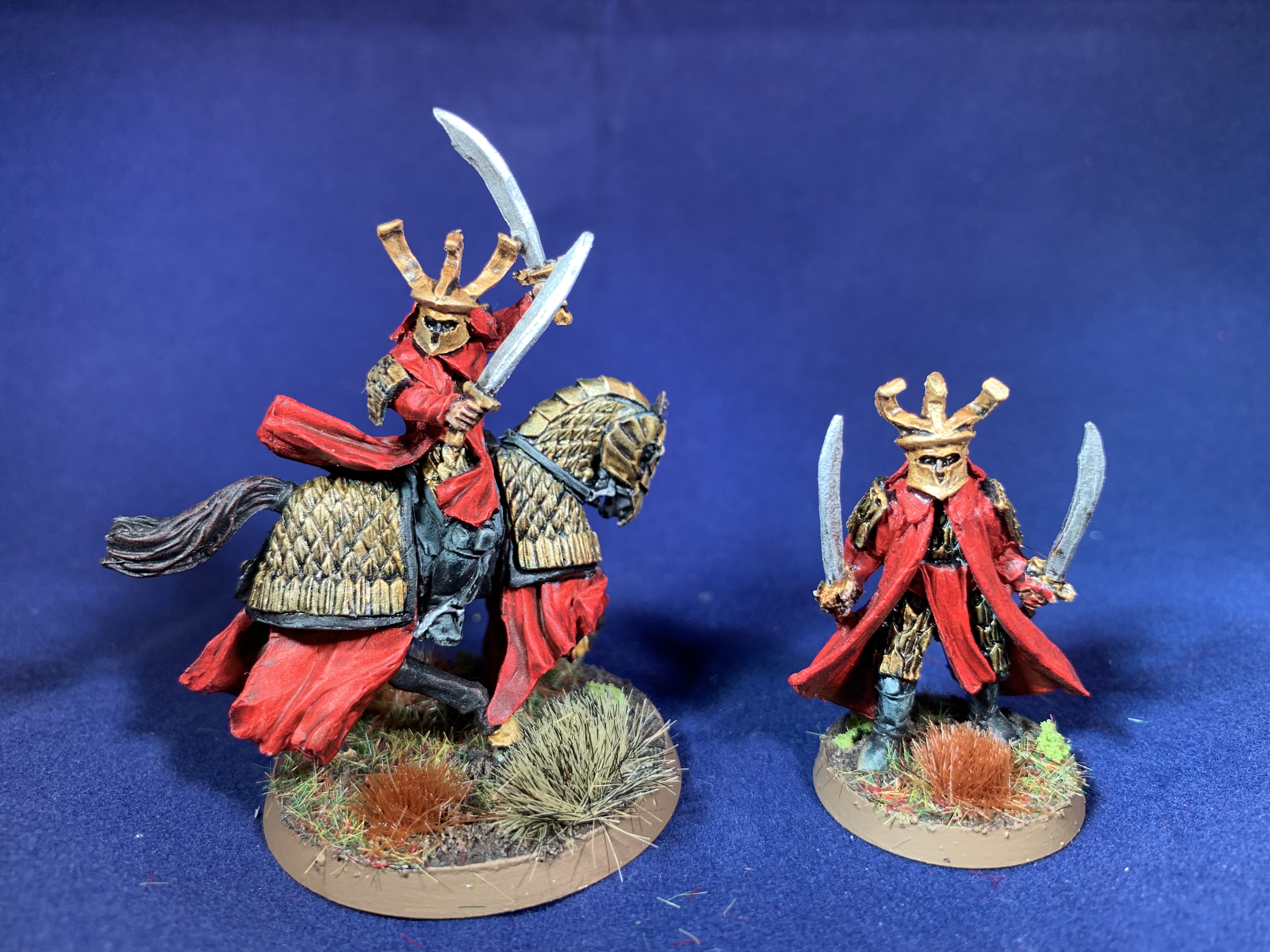 Some commanders to boost my Easterlings ready for War in the North perhaps. Amdur Lord of Blades leads a Dragon Knight Captain. On foot a war priest in service of the Dark Lord with a modified Captain and a Banner Bearer. I modified the Captain so he looked different to my other by moving his Glaive to the front. The figures arrived badly bent but I was able to straighten everything nicely using boiling water. The Captains weapon broke but I was intending to move it around any way and used a rod to fix the weapon head on.