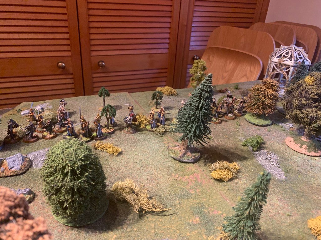 This scenario seemed impossible for the elves. We even allowed only one roll per tree per turn to bring a tree down. With the orcs having troops that move faster and the greater numbers we wondered what they could do otherwise.