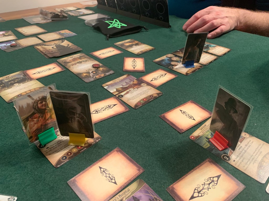 We played Arkham Horror . We snagged 4 of the 6 cultists and then escaped before the end. The final show down is next.