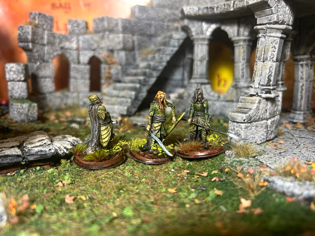 The final scenario in Ghost Stone for Rangers of Shadowdeep. Due to previous successes they were aided by three soldiers and the first event card would wait until turn 4. The distraction had proved useful. Link and Gwalchmai led the group tasked with guiding the sorcerer to the stone in order to destroy it with her powerful magic. They also had the scrolls and the stone ring from previous scenarios which they gave to the sorcerer tasked with destroying the stone.
