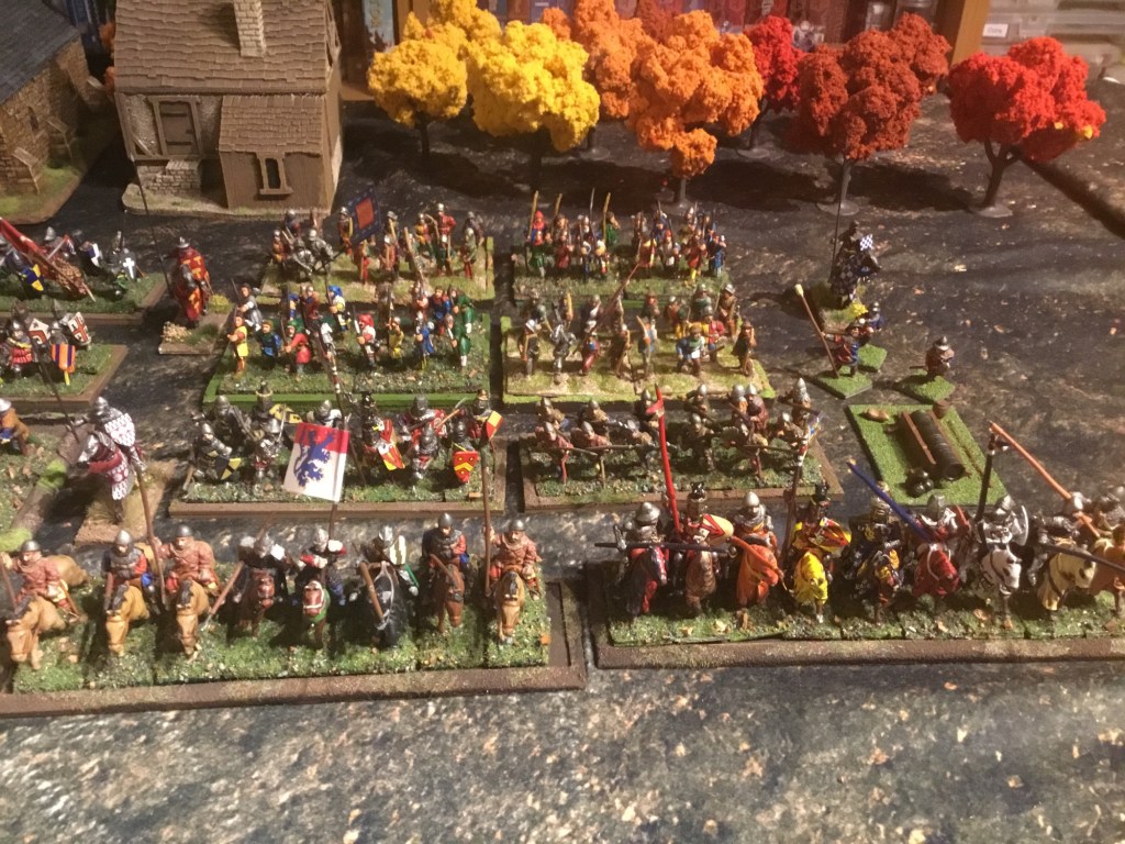 Preparing for Gallia. New rules. The English chevauchee meet the local lord with his retinue backed up with some Genoese mercenaries and very angry militia and some peasants.