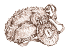 They discover two artefacts bearing the sigil of the Lidless Eye, bound with dark magics, which Bungo takes into his keeping. One an iron talisman and the other a circlet which he can use should he choose, to enhance his skills. Also a small amulet which they later learn is from the far north made from the carapace of the fabled Fastitocalon. This is a token of friendship from the Snowmen of Lossoth.