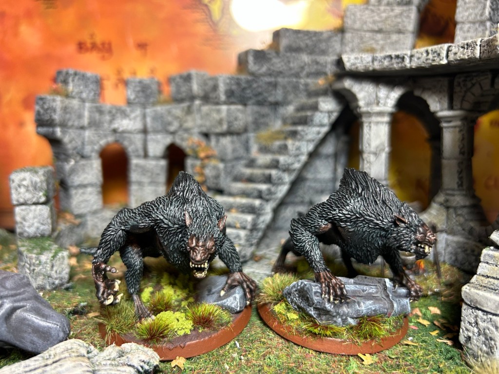 Painting with contrast paints and my first attempt at a modified slap chop method after zenithal highlights. Preferred werewolf to be black furred rather than warg brown.
