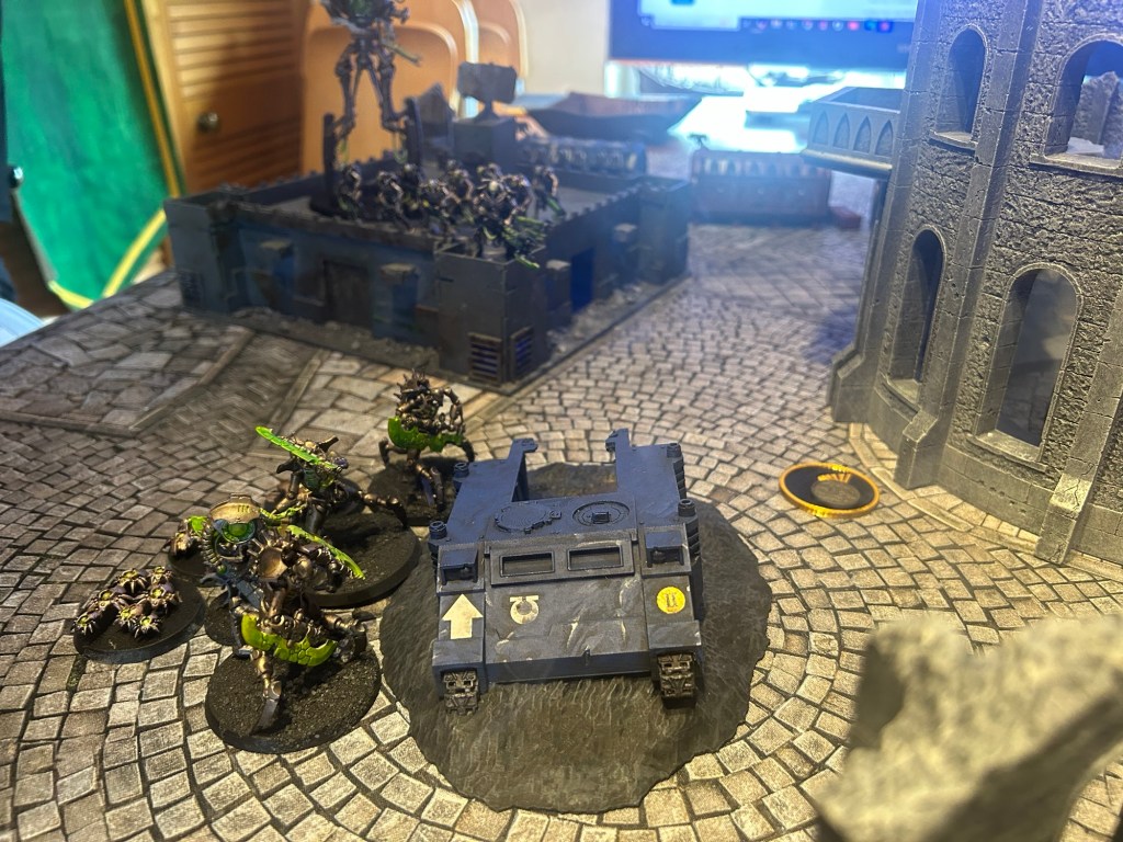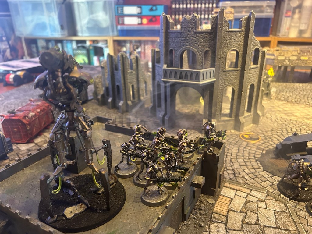 First time playing combat patrol . Link had painted up a combat patrol Necron force so we were keen to try them out.