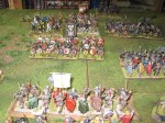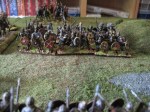 Having amassed our Armies we set out to test the Army Lists and Terrain. The first time we played we found the Mercian Welsh allied infantry far too weak to stand up to the Kentish Saxon Heavy Infantry Thegns. Also the armies moved too quickly across the battlefield which looked a bit sparse. After all we wanted the battle to last a little while on the day!