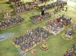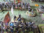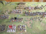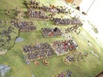 So the second time round we made use of the Combined Formation rule and the stats from the Brunanburh battle from the main rule book. This meant that the Welsh Teulu would make up the front ranks and class as heavy infantry until they were shaken. We also made the marsh rough ground (one move only for formed units) and introduced the old ruined Roman cemetery along the Pilgrim’s way leading into Otford (one move only again). Ironically this time the Welsh javelinmen managed to push back or disorder the opposing Saxon Thegns so we never did see how the new Combined Formations would turn out. In the centre Offa faced against Ecgberht and was wounded with his Hearthrtroop being destroyed! Let’s hope his dice rolling is better on the day!