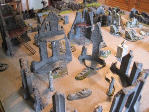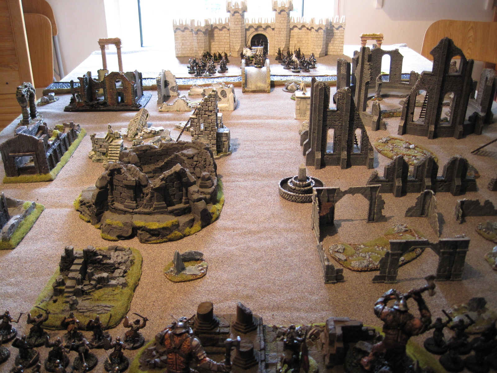 The battle is fought across the ruins of Osgiliath. The Rangers of Ithilen supported by Boromir and his Tower Guard enter from the Northern edge whilst Gothmog and his force from Minas Morgul enter from the South.